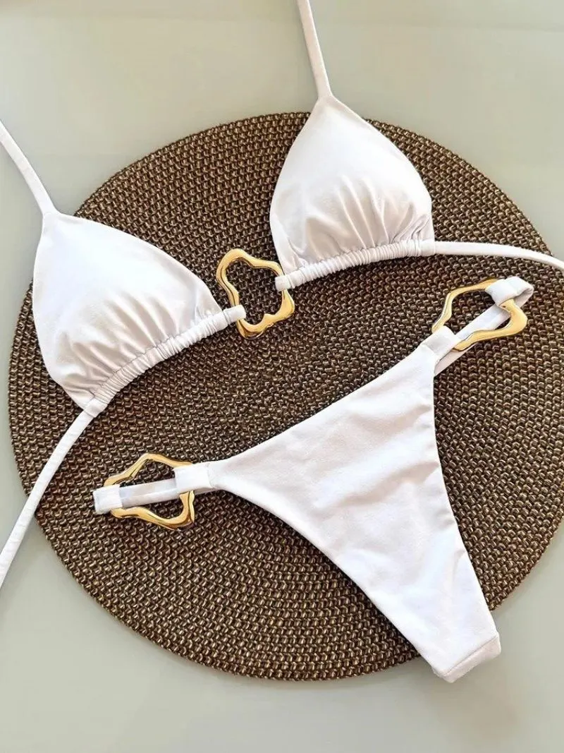 Step into summer with this ladies solid color hollow swimsuit, designed for style, comfort, and confidence. Crafted from soft, durable nylon, this bikini features a chic hollow design and a flattering briefs-style fit, perfect for swimming, beach days, or poolside lounging.