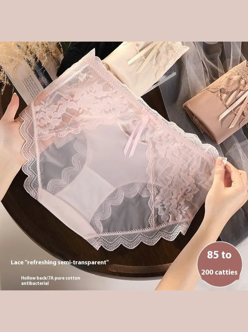 Plus Size French Lace Antibacterial Briefs – Hollow Mesh & Mid-Waist Comfort