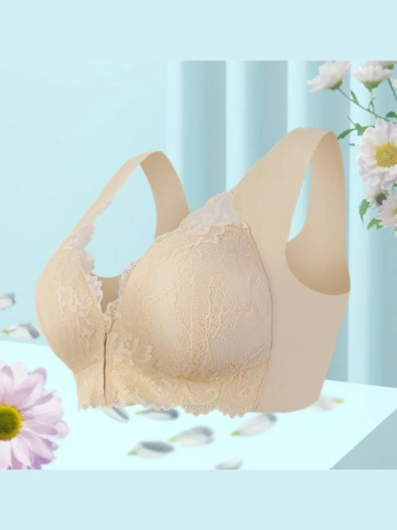 Plus Size Lace Front Buckle Wireless Bra – Seamless Comfort Up to 9XL