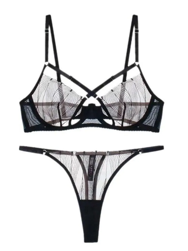 Turn heads with this sexy lace cross-strap bra and panty set, designed for both comfort and confidence. The hollow-out detail and cross-back straps create a bold, stylish look, while the 3/4 cup design offers natural lift, upper support, and breathable comfort.